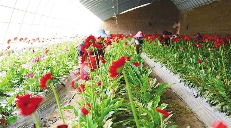 发展现代设施农业是推进乡村产业振兴的重要抓手。在夏官营镇孙家营村,鲜花基地负责人忙碌地穿梭在各个大棚里,除草、修枝、剪花、包装,玫瑰娇艳欲滴,康乃馨温柔典雅,非洲菊热情奔放,向日葵灿烂明媚……一车车装满鲜花的货车驶出基地,奔赴各地市场,带去的不仅是美丽与芬芳,更是对生活的热爱与憧憬。